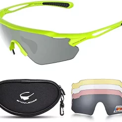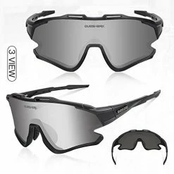 Best deal 🛒 Sports Cycling 👓 Sunglasses 4 Lens Anti UV400 For Men 👩 Women HD Polarized Black Pin 🔥