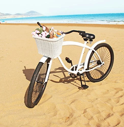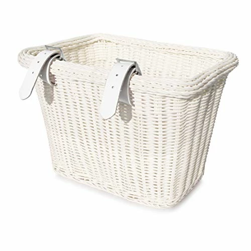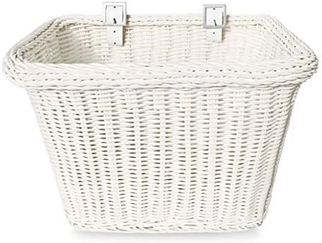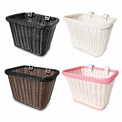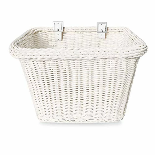 Great basket, very attractive and a perfect size! Will hold a considerable amount (5-6 books, or a pretty good amount of groceries, though you don’t want anything on the front of your bike to be too heavy…). My bike is white, so the white basket is just the ticket, and because it is not wicker it will stand up to the elements quite well presumably; also presumably can be cleaned with a strong jet from a hose if it gets dirty. 4 rather than 5 stars simply because I find the cables from the speed regulator, coming down from the right side of the handlebar, tend to shove the basket a bit to the left, off center. When it’s full this may not be as noticeable.