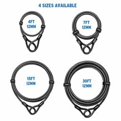 - 4 sizes available: 4-FT x 12mm, 7-FT x 12mm, 15-FT x 12mm, 30-FT x 12mm, Note: when below 20-25 degrees, cable gets stiff and hard to bend