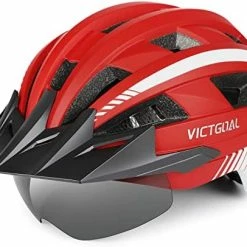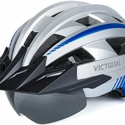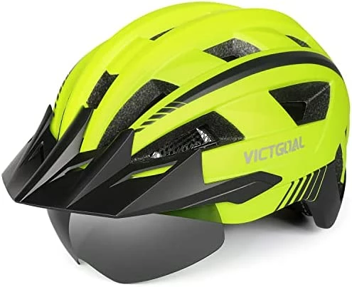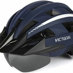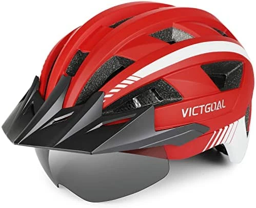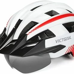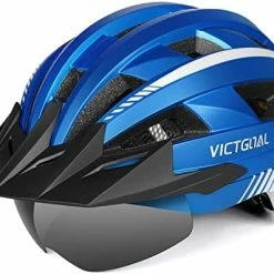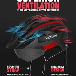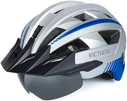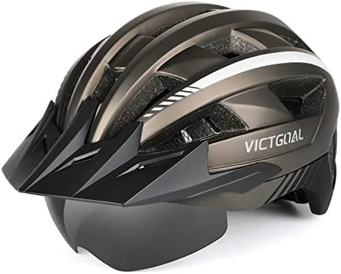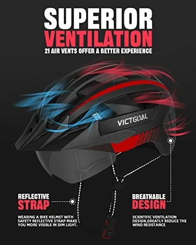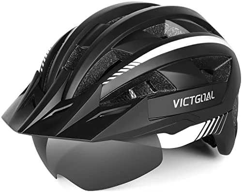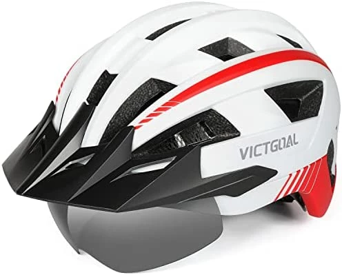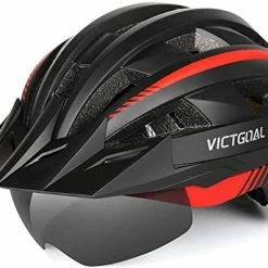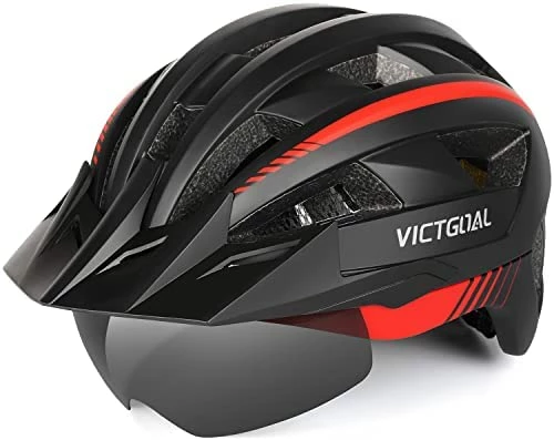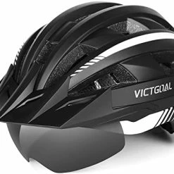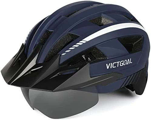 - Magnetic Helmet Goggles and Visor: This VICTGOAL bike helmet with visor and goggles, it is an ideal bike helmet for mountain bike and road bike cycling. You can put the goggles and visor together, not only can protect your eyes from sunlight, but also can protect your face against the sand and wind. It also wonβt interfere with wearing your own glasses.