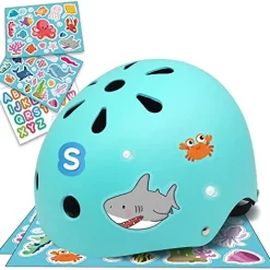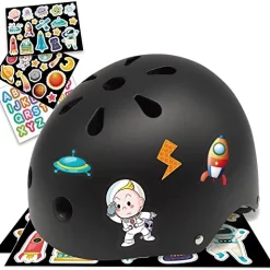 My kids had so much fun decorating their helmets! The stickers have a strong adhesive and are very bright and colorful. The helmet is easy to adjust and comes with extra pads for the inside. I would recommend to anyone looking.