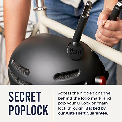 - SECRET POPLOCK: The most convenient and secure way to leave your helmet behind. Access the hidden channel behind the logo mark, and thread your U-lock or chain lock through. Backed by our Anti-Theft Guarantee.