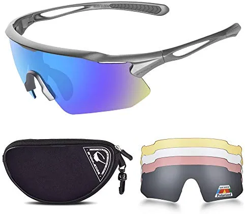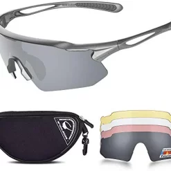 - γFive Replaceable Lensesγ All lenses are 100% UV400 resistant to block harmful UAV and UAB rays. Restores the natural light of the scene, eliminates astigmatism, and perfectly protects the eyes.The main one is colourful lenses, the yellow one is for night , gray polarized lens for strong sunlight; pink and transparent lenses for cloudy days.