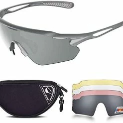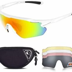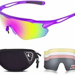 - γSports Glasses with 5 Interchangeabale Lensesγ All lenses comes with anti fog and anti UV treatment and REVO colored coating. Main colorful lens, yellow lens for night cycling, gray polarized lens for strong sunlight, pink lens for cloudy days, while transparent lenses for night and bad light condition, better protect your eyes from bugs/debris while cycling