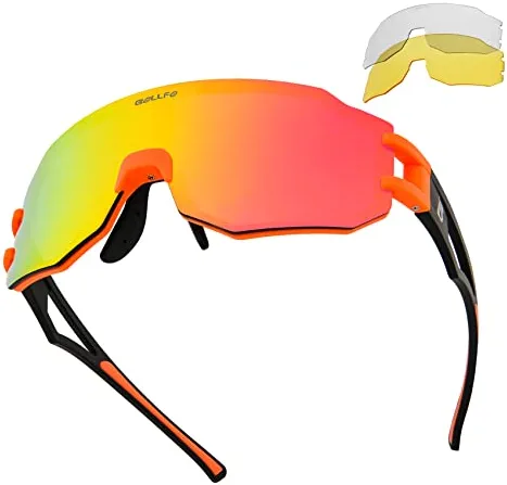 I wear these Bollfo Cycling Sunglasses when I ride my road and trail bikes. Love the fit and the look. Plus the frame does not discolor easily with my sunblock . Easy to clean also.
