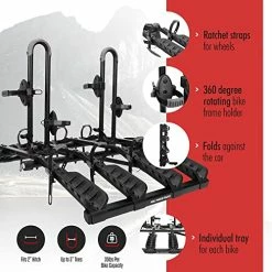 - Quick and Easy Loading and Unloading: Our hitch mount bike rack features individual wheel trays for fast, hassle-free loading and unloading. This SUV bike rack fits a standard 2″ hitch and carries four bikes with a maximum of 35 lbs per bike.