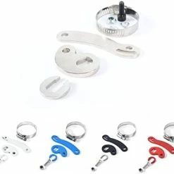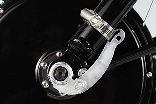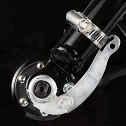 These work well and are plenty sturdy on a 750W hub motor 20″ tire. I got two but that is probably overkill, one would probably work just fine. I didn’t need a titanium CNC machined ultralight weight torque arm so these work just fine. Only gripe is that the hose clamp is a pretty cheap version and the screw part comes out of the housing easily.