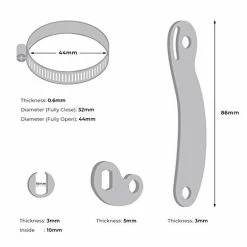 - Dimensions: Arm length 86mm, Axle opening 14mmX10mm, C Clamp 14mmX10mm, Arm thickness 3mm, Hub mount thickness 4mm, C Clamp thickness 3mm, Total weight 2.3oz