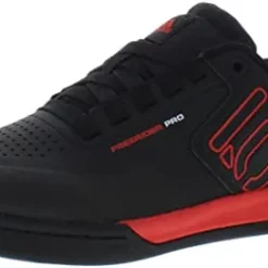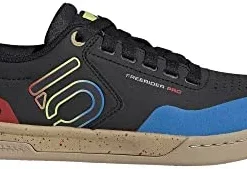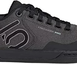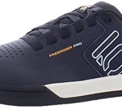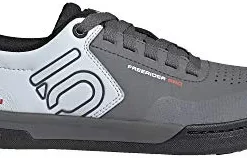 This shoe works really well for me except it is a bit too grippy as it is somewhat difficult to adjust my foot placement on the pedal (I’m going to screw the pedal posts down a millimeter or so to see if this helps). Previously, I wore the Five-Ten Freerider (not Pro), and it was easier to adjust foot placement.But the Freerider Pro compared to the Freerider is a much better shoe with higher quality and more durable material and better construction. The upper part of the Pro version is better: (1) because there is a tough rubber strip surrounding the toes (and heel, too) which is great for foot strikes, (2) the material covering the top of the foot, a slightly softer, but still firm rubber compared to the tough toe rubber, has a pattern of holes for releasing moisture, and (3) the lace-tongue construction holds the tongue in place much better on the Pro version compared to the Freerider which constantly has the tongue slipping down to the side.Beneath the rubber exterior is a layer of soft material for added insulation and comfort. In comparison, the Freerider exterior material is a soft cloth material and not protective at all, which my right foot discovered the hard way last year when I bashed my foot against a tree stump. I limped around for 3 weeks with a sore toe. With the Pro version’s durable exterior, I would have ridden away uninjured and pain-free.The interior of the shoe is well padded all the way around, and below the shoe insert is a medium firm white rubber compound for an extra bit of support, cushioning, and comfort. The Freerider Pro is definitely a stiffer shoe than the Freerider, but it still does have some flex to it. The one thing, however, about the rubber layer is it does trap some moisture (despite the holes on top), and since the trails I ride have a lot of sandstone, I get a bit of sand creeping in beneath the insert and sticking to the rubber pad. So after each ride, I remove the inserts, wait for things to dry out for an hour, and dump out the sand particles — not ideal but not a deal-breaker, either. Obviously, in the summer heat, your shoes are going to collect some moisture, but overall I would say that this shoe breathes pretty well and hasn’t been too hot. I suspect that on cold winter rides that it will be better insulated than the Freeriders which didn’t do well under 20 degrees Fahrenheit.In conclusion, I would describe the Freerider Pro as a high quality shoe with excellent materials and construction and very high grip. I’m giving it 5 stars despite the shoe being overly grippy because in the end having your shoes stay on the peddles is critically important to controlling a mountain bike; more so than slight adjustments to foot placement.