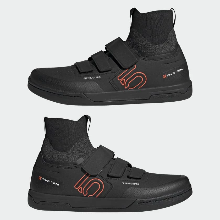 Technical rock garden or flowy berms. You can bomb down the trail in the adidas Five Ten Freerider Pro Mid Mountain Bike Shoes. They combine the legendary pedal control of the classic Freerider with enhanced toe impact protection and a mid-height cuff with D30 inner ankle padding for added coverage. Their Stealth S1 Dotty rubber outsole grips wet, slippery ground and your pedals for full control on and off the bike