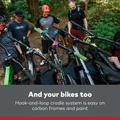 - The hook-and-loop cradle closure system is easy on carbon bike frames and painted surfaces, helping prevent dings and scratches