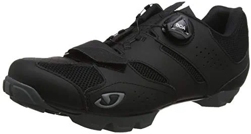 Giro Code Techlace Description: Power to the trail. Code Techlace has been developed to maximise power transmission, comfort and durability for XC riders and long-distance trail riders. The Techlace closure system provides a smoother forefoot feel than conventional straps, while the proven Boa L6 closure system attracts the upper in 1mm increments for a secure fit. Our proprietary Evofiber material features a moulded rubber reinforcement that allows it to adapt to your foot while resisting wear caused by rocks, roots and other drops. Inside, the SuperNatural Fit footbed with adjustable arch support stabilises your foot for more efficiency when pedalling, giving you the full performance of the Easton EC70 carbon sole. The last detail is a robust, adapted Vibram rubber outsole that provides exceptional durability and grip. Closure system: Boa L6 lacing system with 2-fold Techlace lacing system. Outer material: high-quality, breathable Evofiber microfibre rubber toe protection. Lining and insole: SuperNatural Fit Kit with adjustable arch support. Aegis e fibre. Sole: Easton EC70 carbon fibre. Moulded Vibram rubber. Highly resilient, studded outsole. Midfoot scrub protection. Suitable for steel spikes. Pedal system: SPD pedal system compatible. Weight: Weight (per shoshoshoshoSize 42, 5): approx. 345g Sizes: UK 6-22 (half sizes: 39, 5-46, 5)