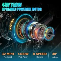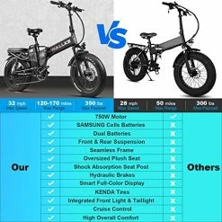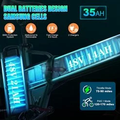 - Special Feature: Foldable; 21AH/35AH Samsung safety battery; 750W brushless upgraded motor; full shock; aerospace grade aluminum frame; 180MM hydraulic disc brakes; Shimano 8-speed transmission; cruise control; 4 riding modes; KENDA fat tires; adjustable handlebars, saddle, seatpost and pedals; waterproof integrated cable; integrated bright LED headlight and brake taillight; See more