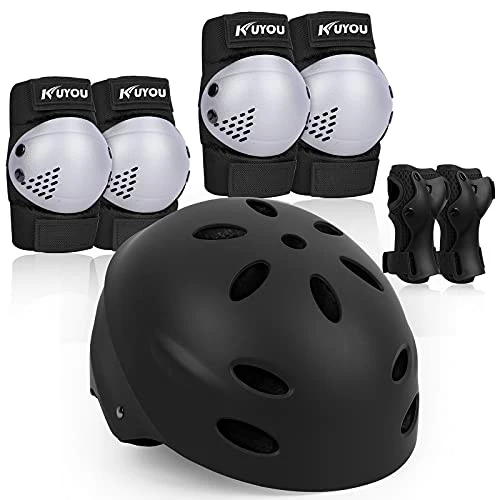 - KIDS PROTECTIVE GEAR SET: 1 X Helmet, 2 X Elbow pads, 2 X knee pads, and 2 X wrist guards 7pcs a set, coming with a carry bag, bring your child all-round and perfect protection.