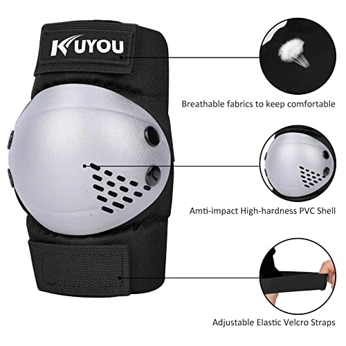 - IMPACT RESISTANT: Helmet use ABS outer shell and high-density EPS inner shell, thickened soft sponge,that’s would help absorb the impact and protect the head during impact. Protective gear Made of High hardness PVC shell,thickened soft sponge,durable and tough material with breathable liner, safety protection to their head knee elbow and wrist.