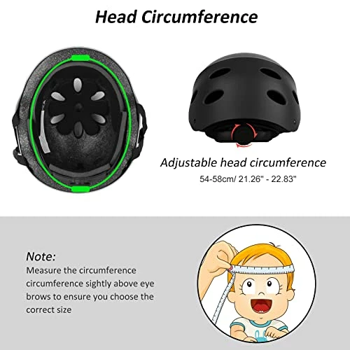 - ADJUSTABLE KIDS HELMET : The kids helmet designed for kids ages 5-12 Years. Head circumference comfortable size-(55-57cm/ 21.65″ – 22.44″), in fact the Kids helmet head adjustable size can be extebded to 54-58cm/ 21.26″ – 22.83″ -There’s an adjustable rotary internal regulator at the back of the helmet, so that you can adjust it to fit your head ,The helmet is suitable Kid / teens.