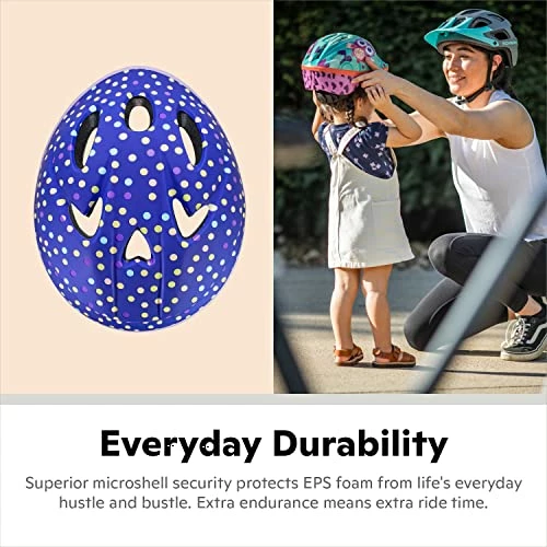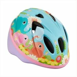 The helmet fit my 1 year old and was easy to adjust as she grew. She has an average size head. It is challenging to snap the chin strap under the jaw without pinching skin or getting the strap to loose. It was a very light weight helmet but my child would mess with it while I was riding and eventually the padding which is held in place with Velcro would move and start to scratch. I donβt know of any helmets that are put together differently so I donβt really think this is a bad helmet but if you have a kid that fights hats you might want to consider how hard your going to have to battle them to keep a helmet in place. Otherwise itβs cute and works like any other helmet.