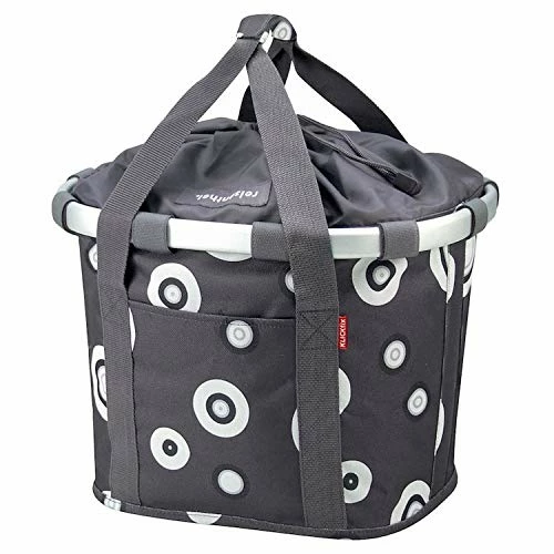The result of a cooperation between two leading brands. The stylish Reisenthel fabric basket has a unique aluminium frame with Klickfix coupling. A fine shopping companion on and off the bike. Fabric basket with pouch on front side, inner compartment with zip, cell phone compartment, drawstring opening and detachable multi-purpose pouch. Available in various designs; made of tough polyester and collapsible. The lightweight aluminium frame is combined with a Klickfix coupling for the handlebar adapter. Fits the Klickfix handlebar adapter system and simply click on. This product is sold without an adapter. Choose the adapter version that best fits your needs.