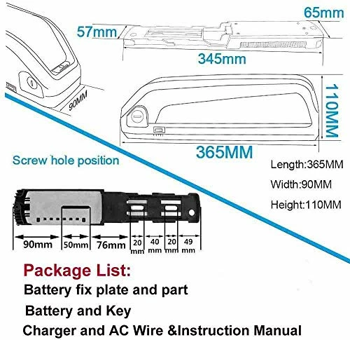 - 【Parameter】This Ebike battery is 48V 13AH, suitable for 1000W/750W/500W motor(50W-1100W) motor. Max constant discharge current: 30A. Size: 365*90*110MM. Charger: 54.6V 2A . Discharge:Anderson(Male&Female Side)