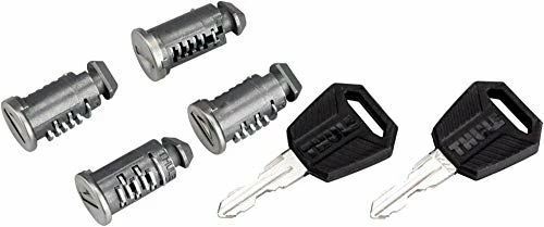 This is the standard thule locking system. It prevents people from taking the crossbars off your vehicle. It installs very easily onto your crossbars, you just need to pop the plastic screws out and put the locking ones in. You will need to buy as many as you need in one box so you don’t have a bunch of different thule keys. Make sure you mark your keys if you already have separate keys for attachments on the top. If you lose the keys you can order more keys from thule, you need to save the numbers on the keys.