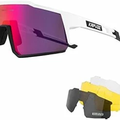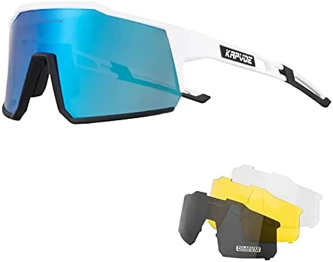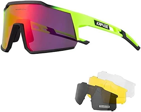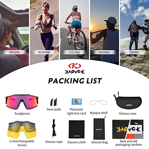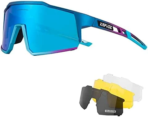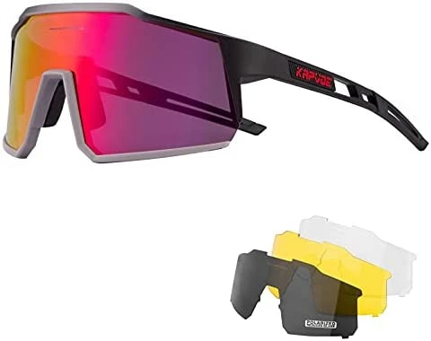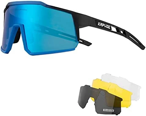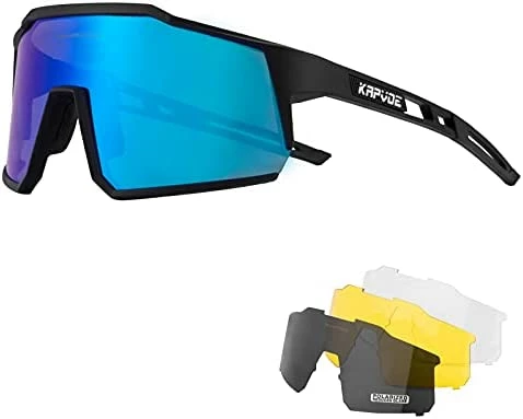 - ?γ4 Interchangeable LensγKAPVOE cycling Glasses equipped with 4 interchangeable UV protection lenses, but only the black lens is polarized. Restore true color, eliminate reflected light and scattered light. HD Clear lenses suitable for cloudy In low-light environments, the vision is clear. Yellow lenses are suitable for night and dark environments, enhancing light.