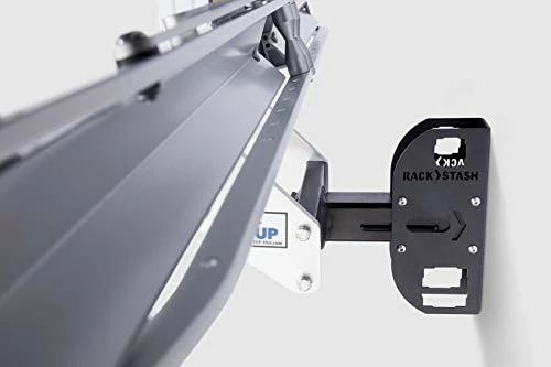 I purchased this hitch mounted bike rack storage to get my Yakima Hold-Up 4 off the work bench and storage rack in my garage to clear up space and to prevent it from falling off and damaging my car again. After finding a wood stud behind the the drywall in the garage it took me 15 minutes to complete the install with the 3 lag screws provided. But beware the Rack Stash is a much tighter fit (for the 2 inch size) than the hitch on our van and some white lithium grease was required. The Rack Stash is holding the 95 lb. bike rack with no problems at all. Great purchase!!