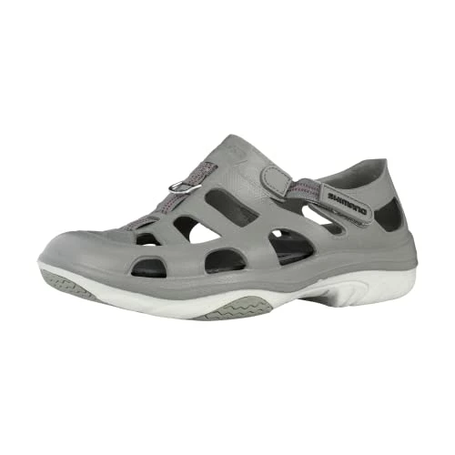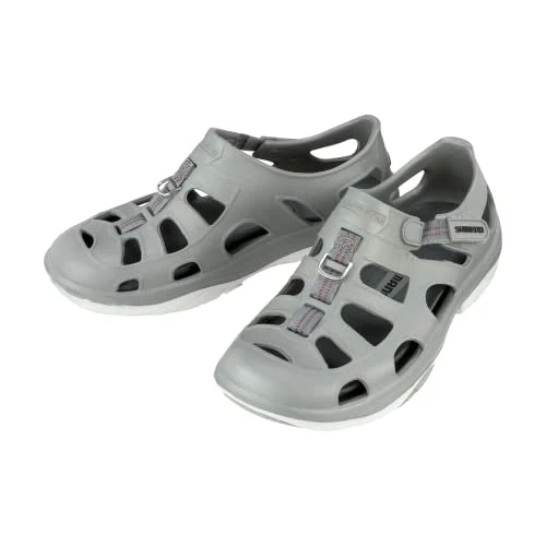 If you’re looking for a great boat shoe you have found it, Shimano Evair. I’ve been using these shoes for a couple of years now and they are great. Good grip in slippery conditions. They are a bit wider than a regular shoe but this is great as it lends to more stability. My last pair lasted 2 years with daily use so they stand up. Hard sole gives good protection while walking on rocks when shore fishing.