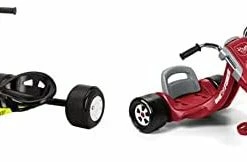 The media could not be loaded. Β Get outside and have fun! No excuses. Donβt know how to balance on a 2 wheeler? So what. Feel silly riding a big wheel as an adult? Get over yourself. This Razor product is like a time machine. Iβm 6β0β , 220lbs , 50 and remain physically active, though I let myself go over the past 3 years. Didnβt matter at all. Riding on this with my wife was crazy fun. Loud as Hell on the pavement, but it didnβt matter to us since we were squealing even louder with delight.I was concerned about the weight limit and relied on the other reviewers who were 200lbs+. I donβt know that I would take this to a skate park and hit ramps with my extra weight (and stress on the frame), but I felt as solid on this trike as on my mountain bike. Zero tension noises from the frame. Zero wobble. The weld joints look excellent on both trikes that I bought.The ride position is as exactly as I remember on my big wheel and green machine, except my larger, too heavy frame does require that I hold myself up more. I can feel it in my hands, but the grip is plenty comfortable so I have no complaints. If you have absolutely no upper body strength and zero core strength, you might hate the riding position. But I donβt think anyone like that is buying this product.Donβt like people looking at you and passing judgment? Lifeβs too short to let strangers deprive you of fun because they might disapprove. Sit on one of these bada$$ trikes, and youβll get plenty of stares. Also smiles. And thumbs up. And questions, LOTS of them.The build is simple. The design is brilliant. I was considering a drift trike that cost $425+ but it wasnβt in stock for two months. I kept looking and found this β¦. for $169. I was prepared to spend nearly $900 for two, so I saved nearly $600. Crazy!I knew it would be fun to ride this with my wife, and I wasnβt disappointed. We have an amazing time. In fact, our teenagers were jealous and begged to take them out after.As far as suggestions or expectations, Iβd love to see an option to replace the rear wheels with rubber treads. Iβd probably regret installing them because the plastic is just so loud, obnoxious and FUN, but it would make it easier to communicate with other riders and would be quiet enough to ride at night without waking neighbors. A quick release feature for the rear wheels, paired with a rubber tread option, would be 110% value added.I didnβt see it in the product description, but the trike comes with a long, bright yellow pendant flag for the back. Sitting so low to the ground, drivers might not see you. The bright flags are a great, safety idea. I didnβt install them, but intend to.[10 DAY UPDATE – REMOVED ONE STAR]PROBLEM 1: Riding for an hour and the pedal crank fell off. Seriously?! The bolt had come loose. This is not a bolt that is part of the installation process but should be. You would be well served to tighten the bolt, even apply some thread lock, before you ride. Minus one star.PROBLEM 2: I tightened the heck out of the seat bolts, but 3 of the 4 rattled loose and fell out. The result is a loose, shifting seat which is very annoying (and potentially dangerous). The solution poses a catch-22. You can apply thread lock to keep the bolts from rattling loose, but then you won’t be able to easily adjust the seat for another rider. This wouldn’t be such a problem if there wasn’t so much shaking and rattling, but that’s what you get with (fun) plastic rear wheels. HEY MANUFACTURER, can you please send me replacement seat bolts? I would remove a half star for this, but there’s no option for it.PROBLEM 3: Not so much a problem, but a reminder to check your brakes. Adjust them and tighten them. The pads can be raised or lowered to come into maximum contact with the rim. Adjust them, then tighten the hex bolts so the brake pad stays in place. I found that after riding for a couple of days, the brake pads shifted and stopping became foot-powered. I consider this to be part of basic maintenance for any bike or vehicle, so I’m not bothered by this.