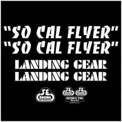 Freshen up your So Cal Flyer with a complete set of decals. The complete set includes die-cut Landing Gear fork decals as well.Kit Includes: 2 Downtube Decals 1 Seat Tube Decal 1 Headtube decal 2 Fork Leg Decal