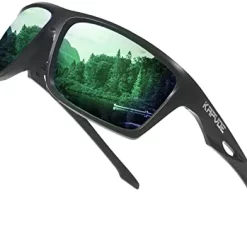 - γPolycarbonate Lensesγ Different from traditional TAC sports glasses, KAPVOE polarized fishing sunglasses are made of Polycarbonate lenses, which is nearly no optical distortion and won’t cause eye strain and headaches when wearing.