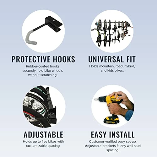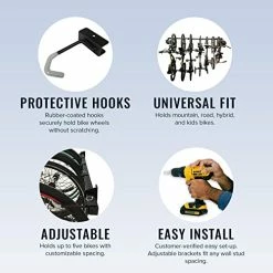 - HIGH CAPACITY: Organize up to 5 bikes and 300 pounds with perfectly sized spacing thanks to our adjustable storage solution. Fits road, mountain, and kid bikes so you can easily store your gear assortment.