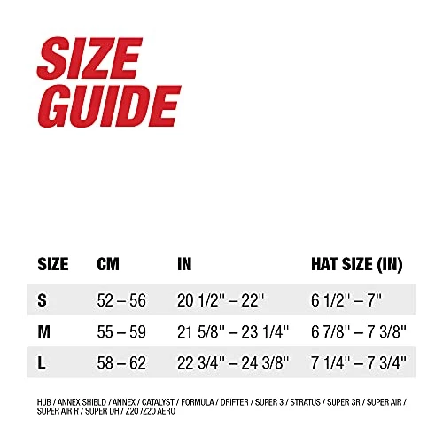 - SPECIFICATIONS – Small (52-56 cm), Medium (55-59 cm), and Large (58-62 cm) Sizes. Important: always take a head measurement. Head sizes and shapes can vary, even within an age range. Using a helmet that does not fit can be dangerous; 18 Vents, 4 Brow ports, and 8 Chin Bar vents.