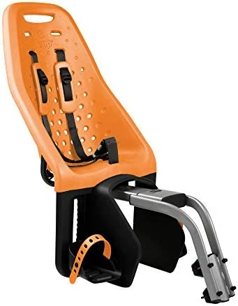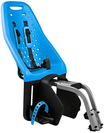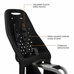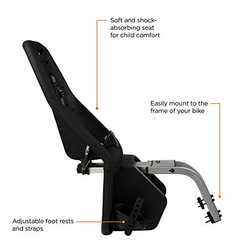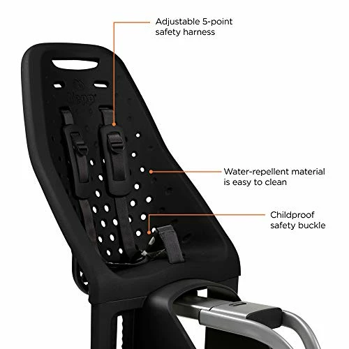 Get outside and stay active as a family with the Thule Yepp Maxi child bike seat. Safe and easy to use, this lightweight rear-mounted kids bike seat allows you to ride as a family on daily commutes or longer biking adventures. The frame mounted seat easily attaches directly to the frame of your bike. Designed with an adjustable 5-point safety harness, a childproof buckle and a shock absorbing seat, your little co-pilot is will stay safe, secure and comfortable on any bike ride. This baby bike seat is built with water-repellent material that is easy to keep clean. Adjustable foot rests and straps grow with your child, making it the ideal bike carrier for kids from 9 months – 6 years (up to 40 lbs). Consult a pediatrician for children under 1 year old.