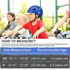 - ? HEAD SIZE: X-Small: 18.11-20.08 inch(46-51 cm), suit for 1-5 years old toddler; Small: 20.47 – 22.05 inch (52–56 cm), suit for 5-8 years old kids. We offer two different sizes of toddler helmet in order to give a comfy fit for kids.(Use a string and tape measure to measure your child’s head before order)