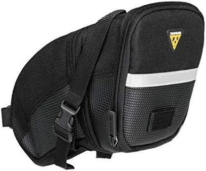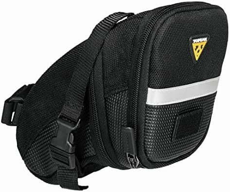 Amazon.comExpanding compartments can boost your storage space in seconds. The Topeak Aero Wedge Pack is a convenient gear-toting solution that clips instantly to the back of your bike’s saddle and seat post. Constructed of rugged 1,200-denier Cordura material with DuPont Teflon coating for weather resistance, the pack attaches with a Velcro strap mount and snap-on buckles. The expandable bag’s large main opening offers room for all of your essential road gear, and a 3M reflective strip and rear light attachment offer safety-minded touches.Specifications130-gram (0.29-pound) weight 60-to-80-cubic-inch capacity Measures 4.1-by-4.7-by-7.9 inches (W x H x D)Product Description”Topeak, Aero Wedge W/Straps Black-Medium Expanding compartments can boost your storage space in seconds. The Topeak Aero Wedge Pack is a convenient gear-toting solution that clips instantly to the back of your bike’s saddle and seat post. Constructed of rugged 1,200-denier Cordura material with DuPont Teflon coating for weather resistance, the pack attaches with a Velcro strap mount and snap-on buckles. The expandable bag’s large main opening offers room for all of your essential road gear, and a 3M reflective strip and rear light attachment offer safety-minded touches. Specifications 130-gram (0.29-pound) weight 60-to-80-cubic-inch capacity Measures 4.1-by-4.7-by-7.9 inches (W x H x D) “