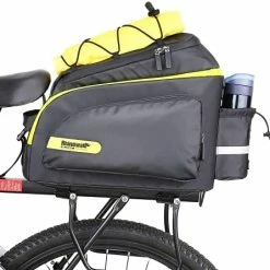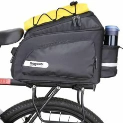 I wanted a bag that fit on top of my rear rack for a recent bike trip. This bag seemed to be the size I wanted so I ordered it. They quality exceeded my expectations. It seems rugged and the zippers are good. I stuffed my sleeping bag, down jacket, and gloves in the main compartment and other small stuff in the side pockets. I put my bike repair kit in the water bottle holder. The velcro straps kept the bag securely attached to the rack throughout the journey even though the route was largely on rough gravel and rail trail. Happy with my purchase!
