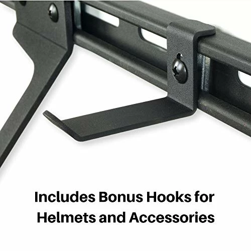 - EASY INSTALL: Includes hardware needed to mount in minutes. Free valuable floor space by securely resting the bikes on the hooks. From bikes with training wheels, cruisers to mountain bikes, neatly store your bikes and up to two helmets out of the way.