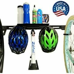 - INDESTRUCTIBLE: Built to last, each steel component is cut and powder coated. Our innovative design supports the bikeβs weight while rubber encased hook cradles without damaging the rim, tires or spokes. A utility shelf organizes water bottles, tubes etc.