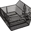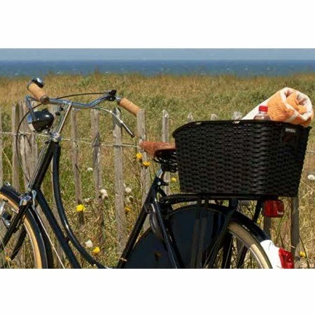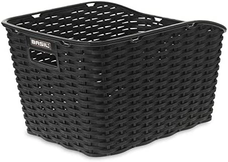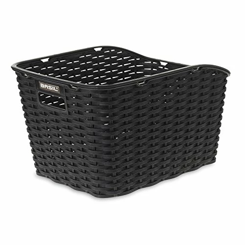 Ample sized rear basket. I added the bungee cord. The shape that lowers in the front makes is so the rider’s back doesn’t bump the basket. The slots for tie downs all the way around the perimeter of the basket are well placed and useful. The installation kit had various spacers to fit almost any bikes set up as long as you have the basket platform as an integrated part of your bike already. This mounts perfectly to that platform. It is so strong that I can lift the back of the bike completely off the ground using the open handle in the back of the basket. It’s a strong basket that should endure a drop of the bike and like I said, it’s stout enough to handle the weight of the bike and not at all flimsy in construction. My university student daughter loves the look of it and makes her grocery store trips with ease and safety now that she is not trying to drive and hold bags of goods. I really like the look of this basket better than milk crates and the like. The basket weave is outdoor grade man made material and should last as well as outdoor deck furniture. It bolted on with 4 Allen nuts and bolts through an adjustable plate. This basket imported from Spain I believe and went through customs so therefore it took a couple weeks to arrive but it is so durable its arrived in perfect shape with all loose parts securely contained and installed in minutes. I’m very pleased with the purchase.
