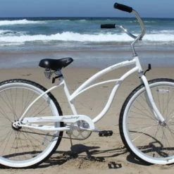 Discount 🥰 Urban Lady Beach Cruiser Bicycle (24-Inch, 26-Inch, And EBike) White W/ Black Sea 🥰